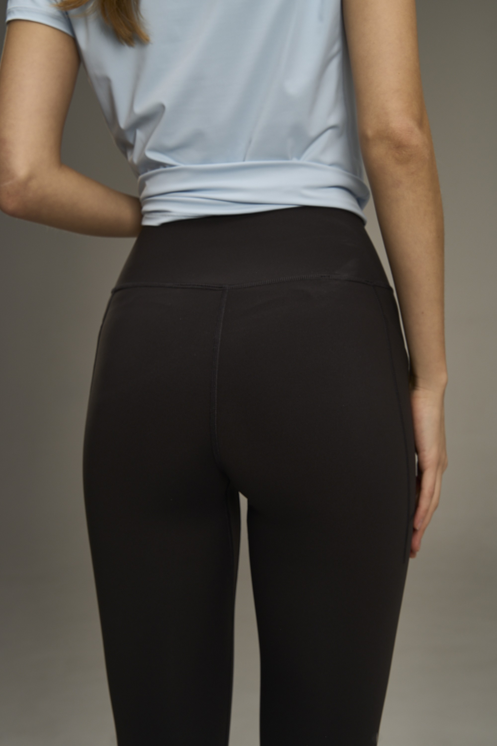 Облегающий крой с минимальным количеством плоских швов предотвращает натирание. Широкий эластичный пояс не скручивается и делает легинсы удобнее.