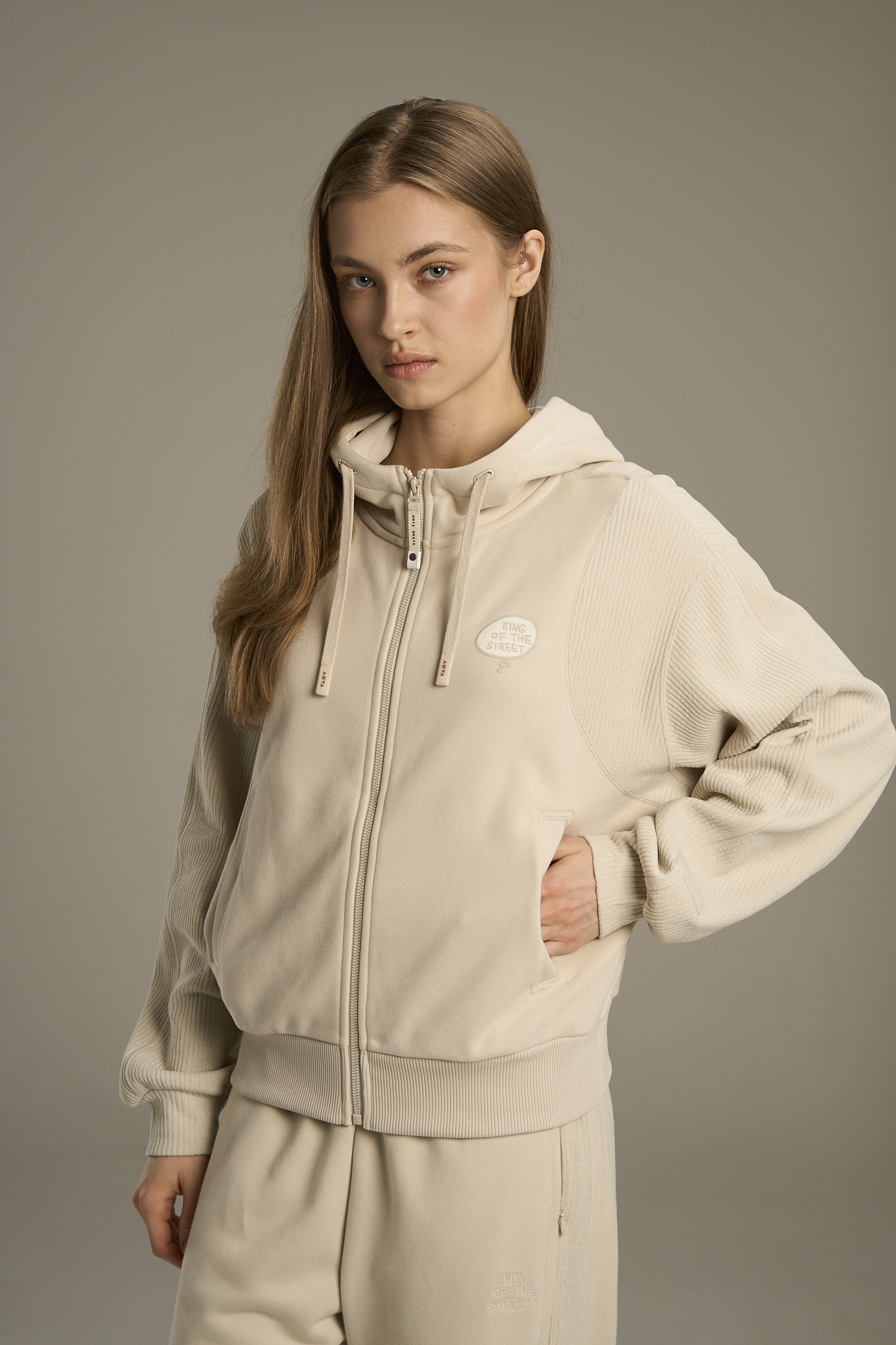Женские толстовка на молнии свободного кроя из коллекции ANTA SKATE в нежном бежевом оттенке — стильный выбор для образа в спортивном стиле. Толстовка выполнена из смесового материала на основе хлопка, благодаря чему обеспечивается высокий уровень воздухопроницаемости и комфорта. Текстурированные рукава в тон изделия подчеркивают премиальный вид. Боковые карманы обеспечат безопасность телефона и других важных вещей.
