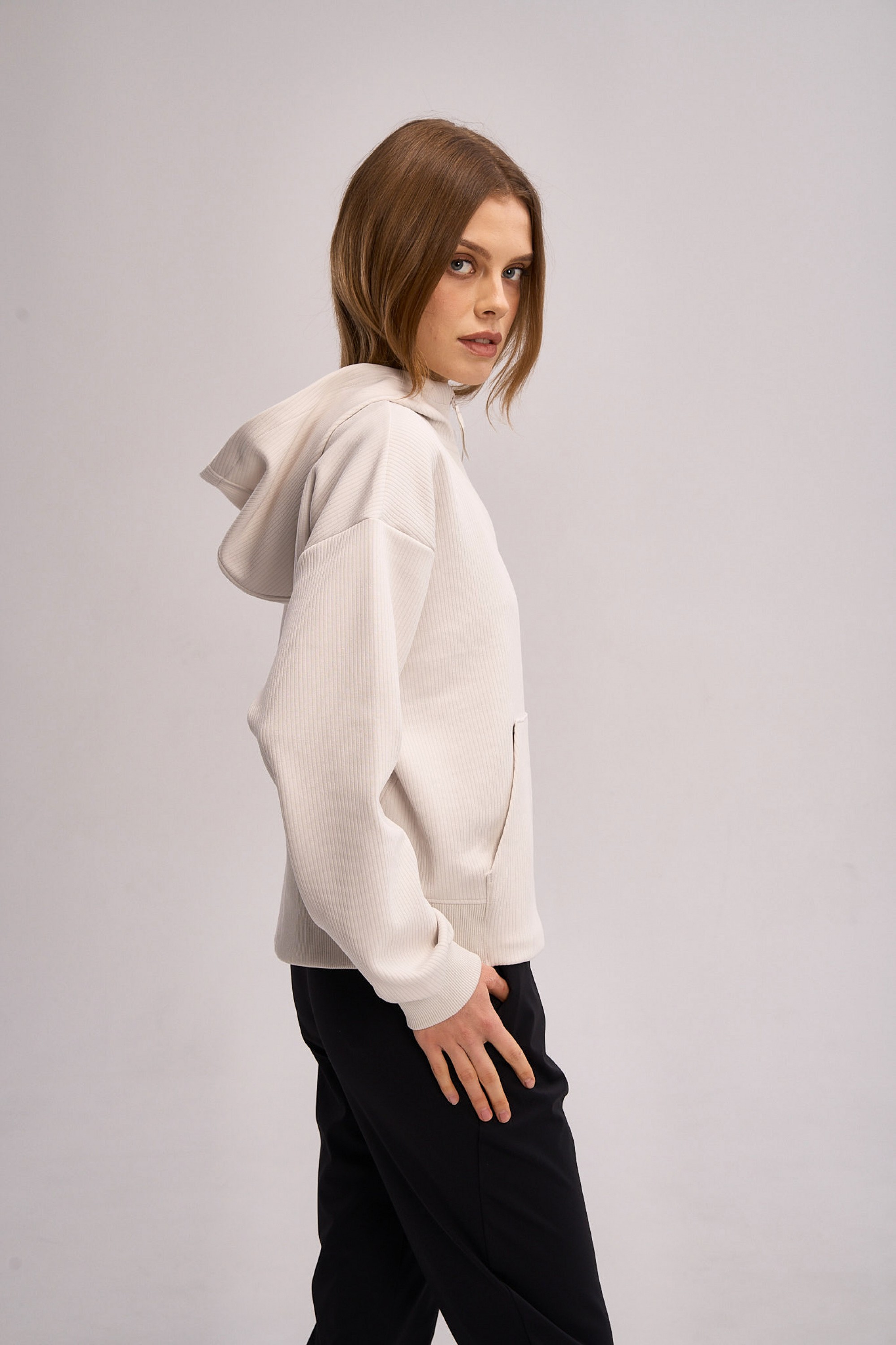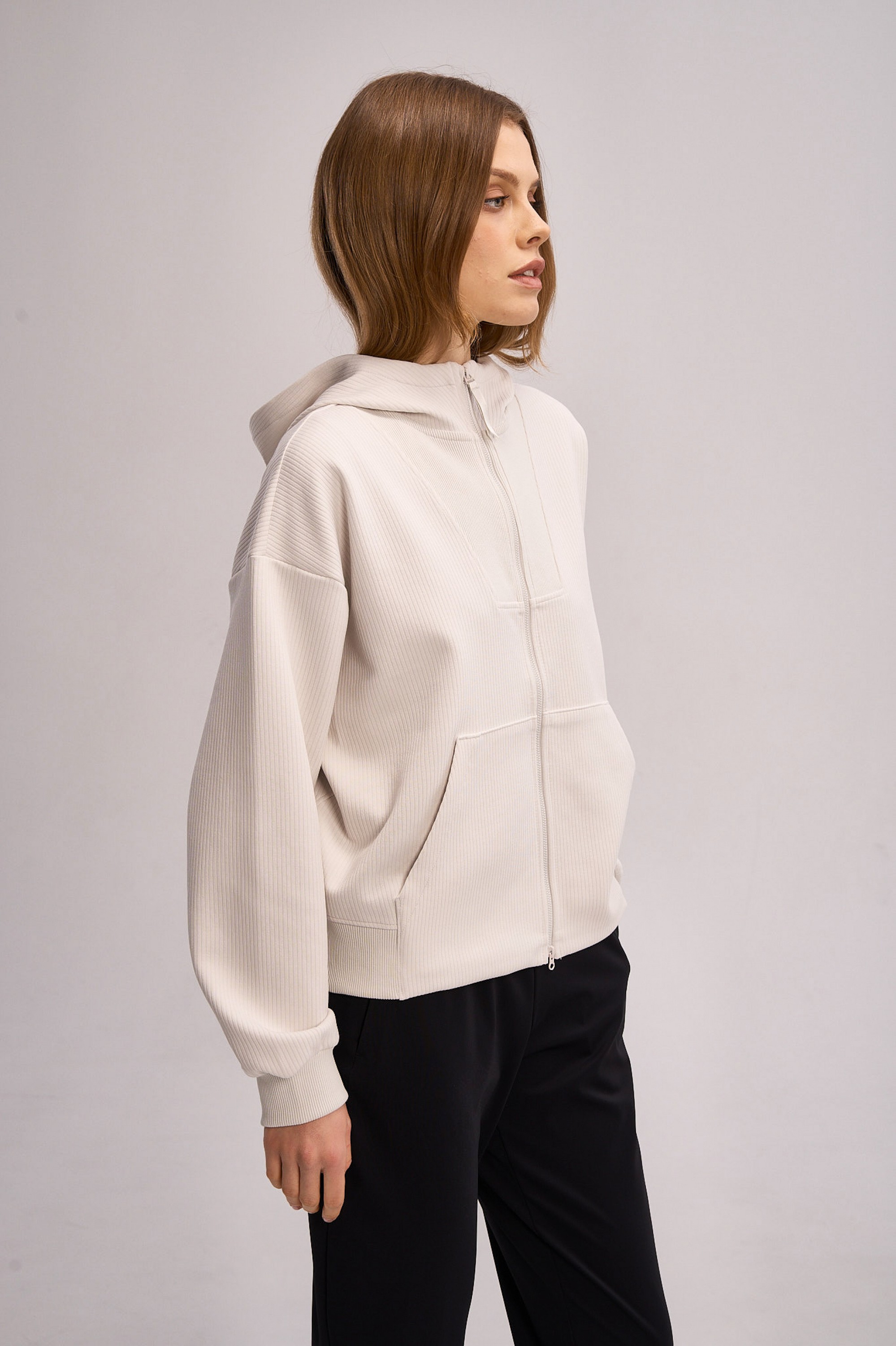 Изготовленная из высококачественного трикотажного полотна плотностью 310 г/кв.м., толстовка сочетает полиэстер для износостойкости, хлопок для мягкости и воздухопроницаемости, нежный модал TENCEL MODAL для шелковистости и терморегуляции, а также спандекс для идеальной свободы движений. Инновационный состав обеспечивает комфорт при активном образе жизни, сохраняя форму после многочисленных стирок.
