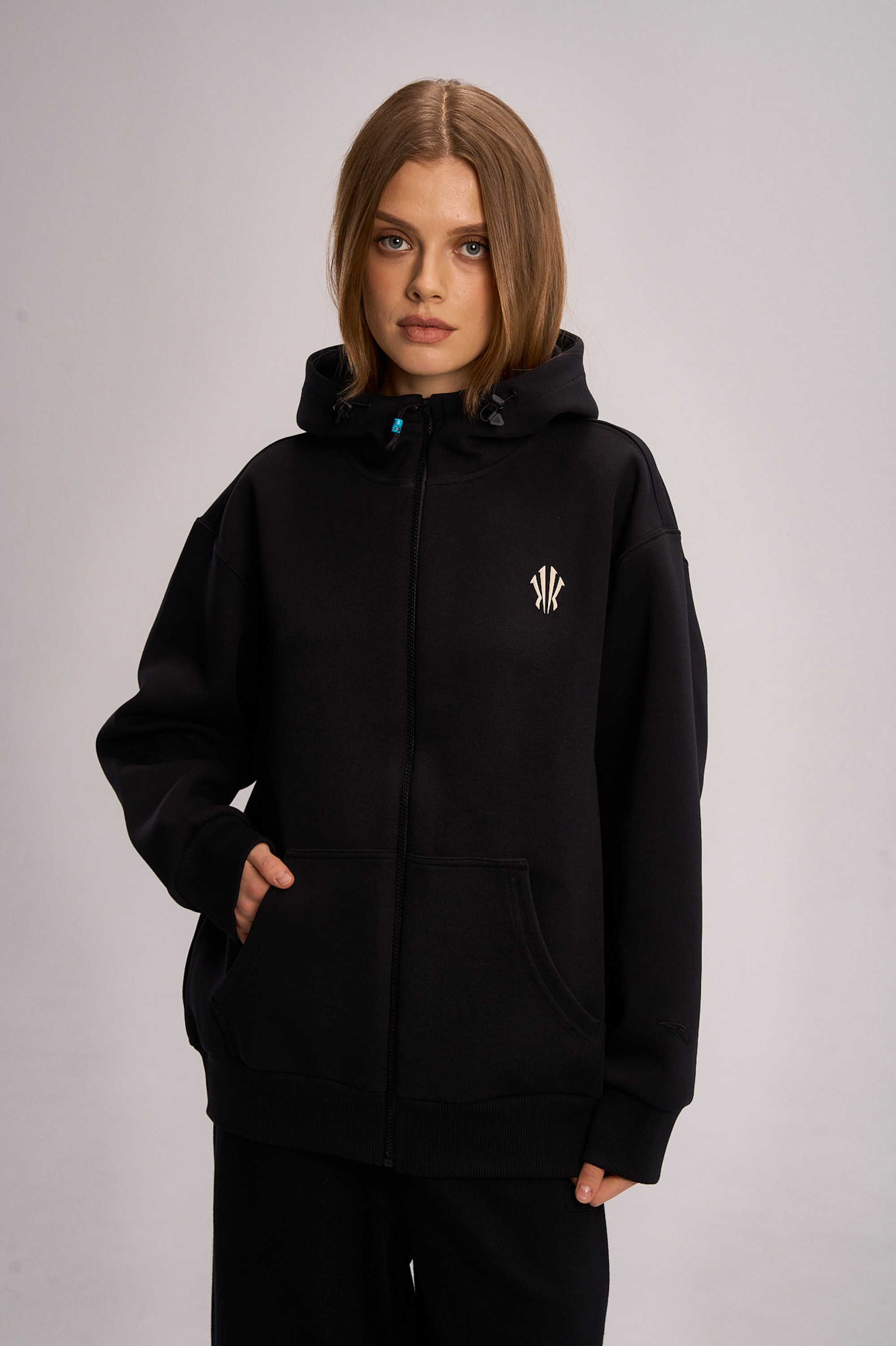 Оверсайз посадка Relaxed Fit не стесняет движений и подойдет для любого типа телосложения. Киперная лента с названием коллекции предохраняет зону капюшона от деформации. Объемный капюшон с регулировочным шнурком и стопорами позволяет точно подогнать его по овалу лица и сохранить тепло. Широкие трикотажные манжеты дополняют ощущение уюта и завершают лаконичный силуэт. Центральная молния с крупным пуллером, украшенным тематическими шармами, и два вместительных боковых кармана добавляют практичности повседневному использованию.
