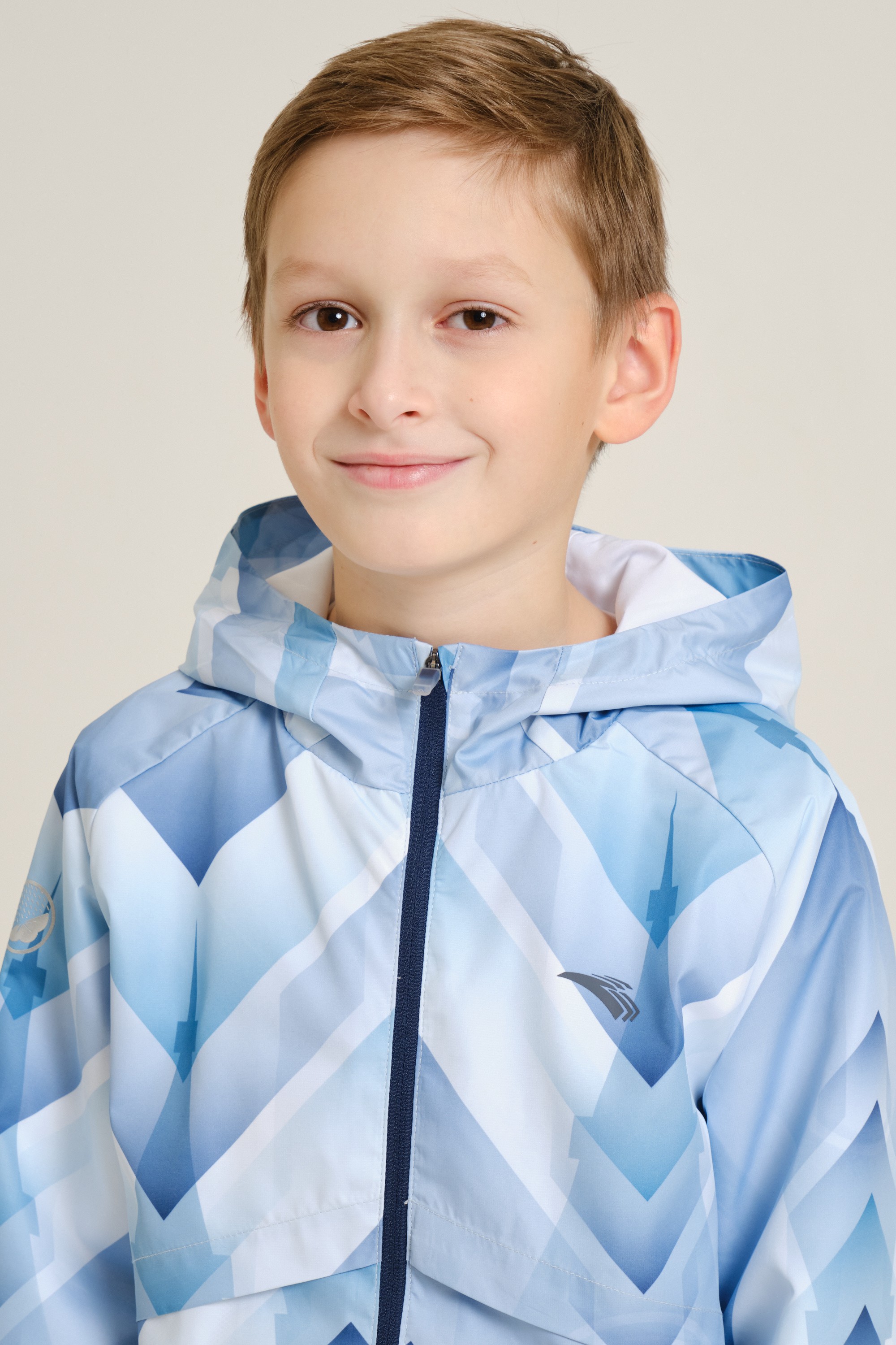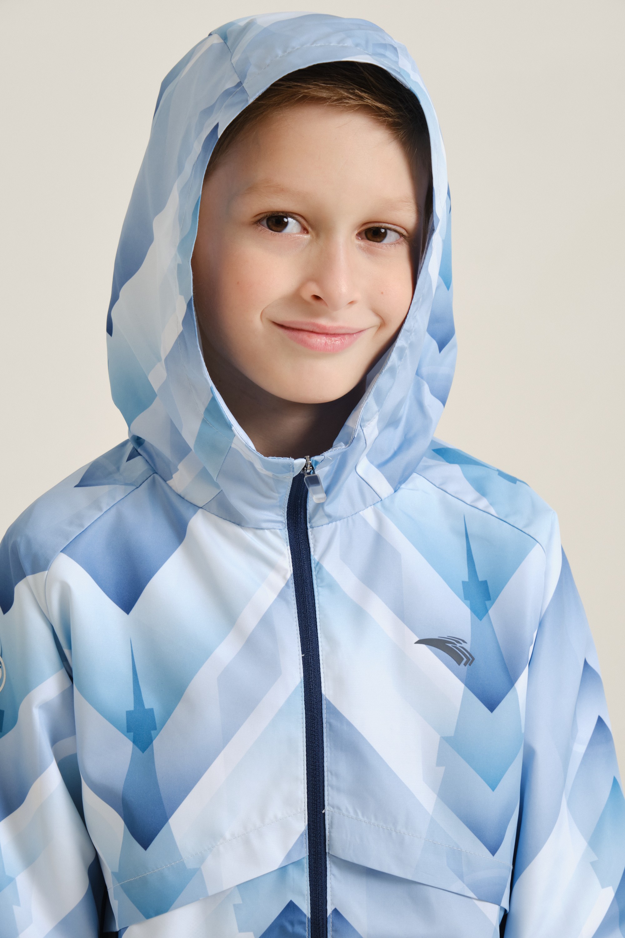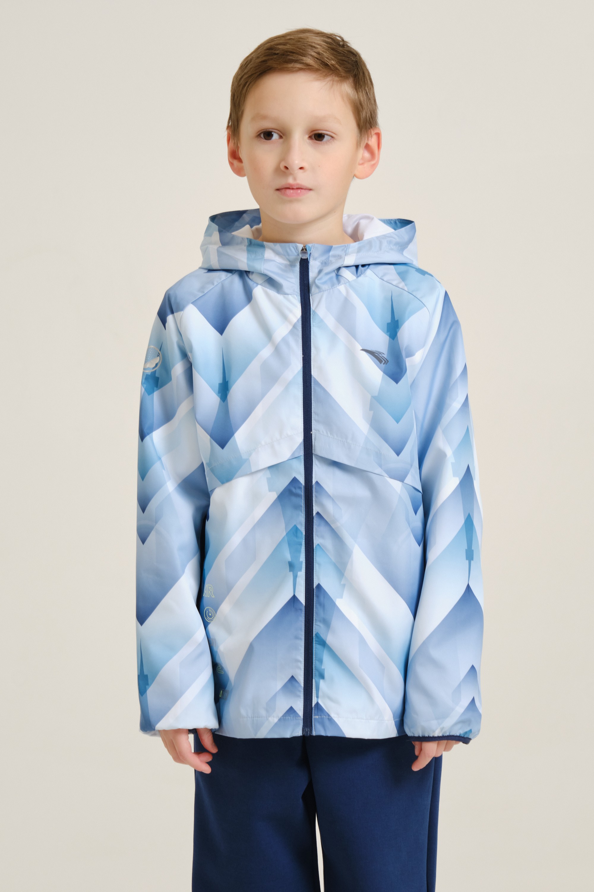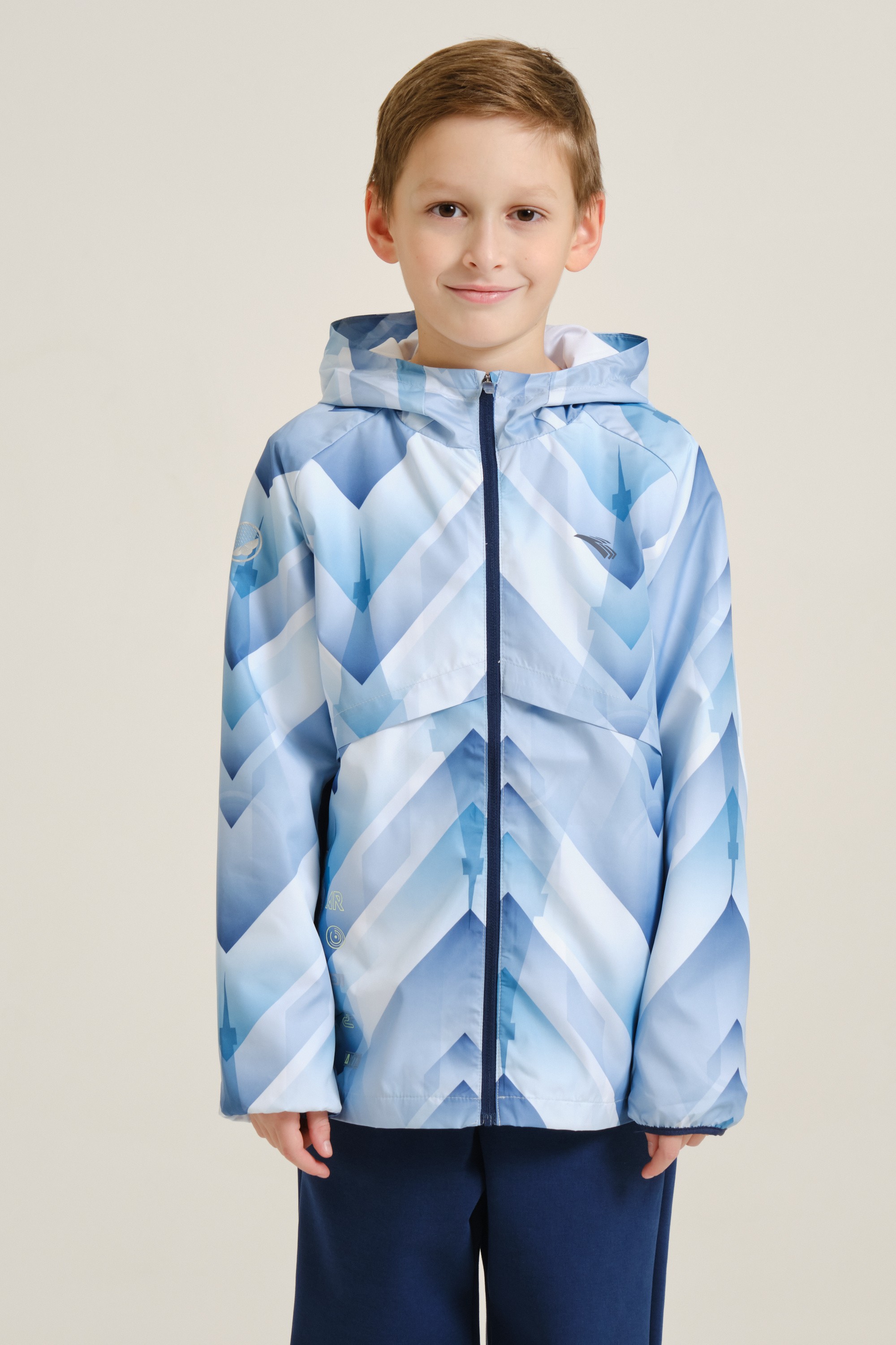 Непромокаемая куртка для мальчиков — незаменимый элемент гардероба на межсезонье. Модель имеет облегающий крой и подойдет как для регулярных занятий спортом, так и для игр и прогулок на свежем воздухе. Благодаря водоотталкивающей пропитке A-RAIN BREAKER куртка останется сухой во время дождя. Модель полностью выполнена из полиэстера — износостойкого и устойчивого к воздействию солнечных лучей материала. Куртка дополнена стильным принтом по всей поверхности, а силуэт рельефного узора на спине напоминает Эйфелеву башню. Плотность ткани — 73 г/кв. м.
