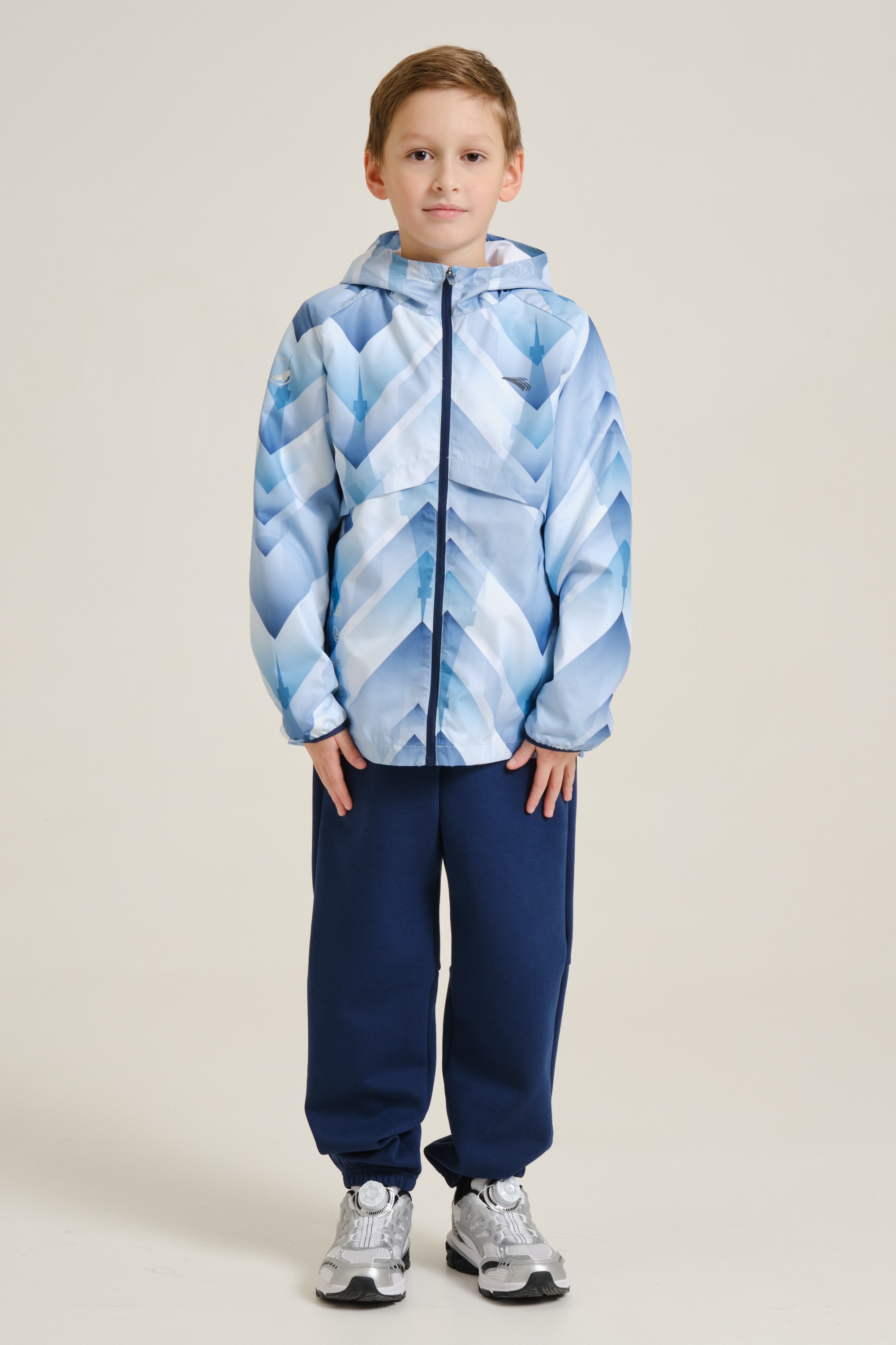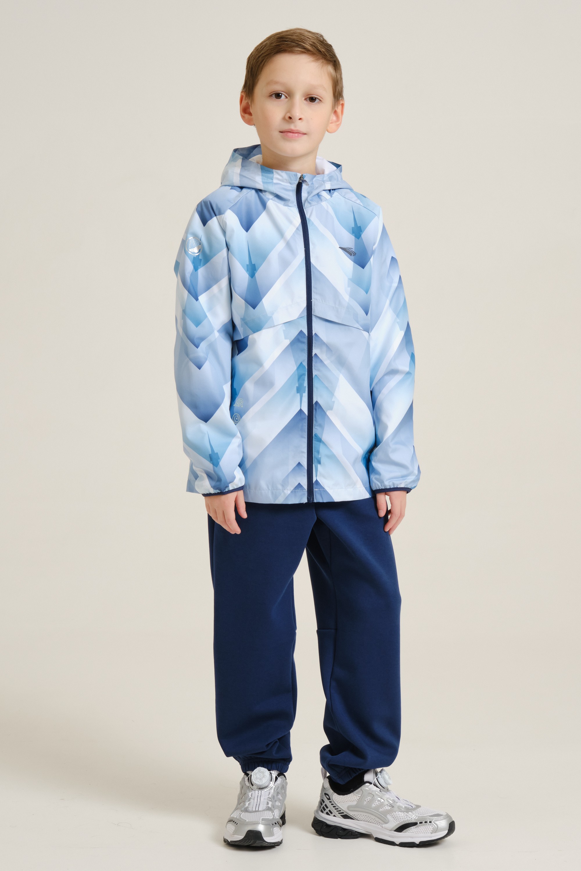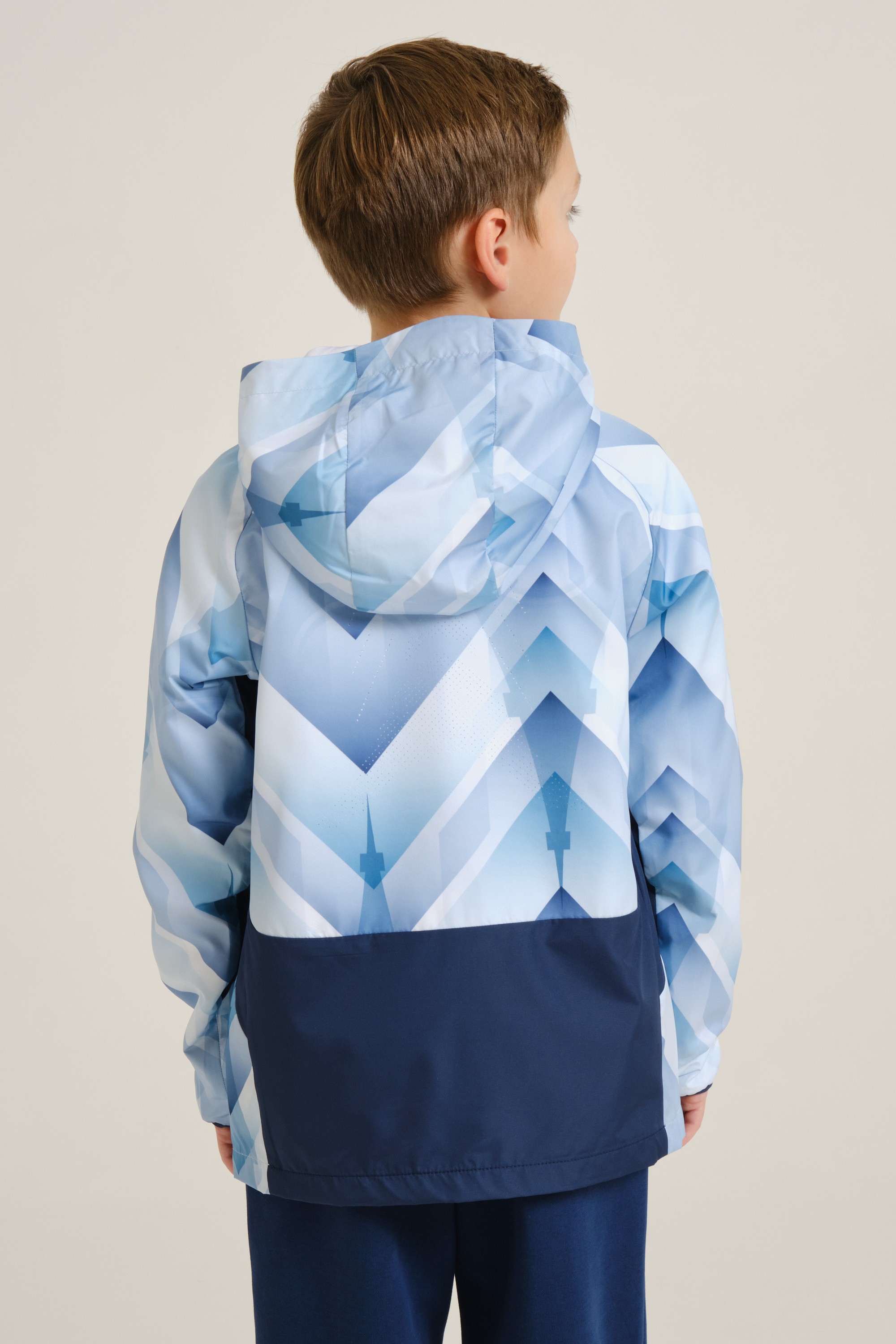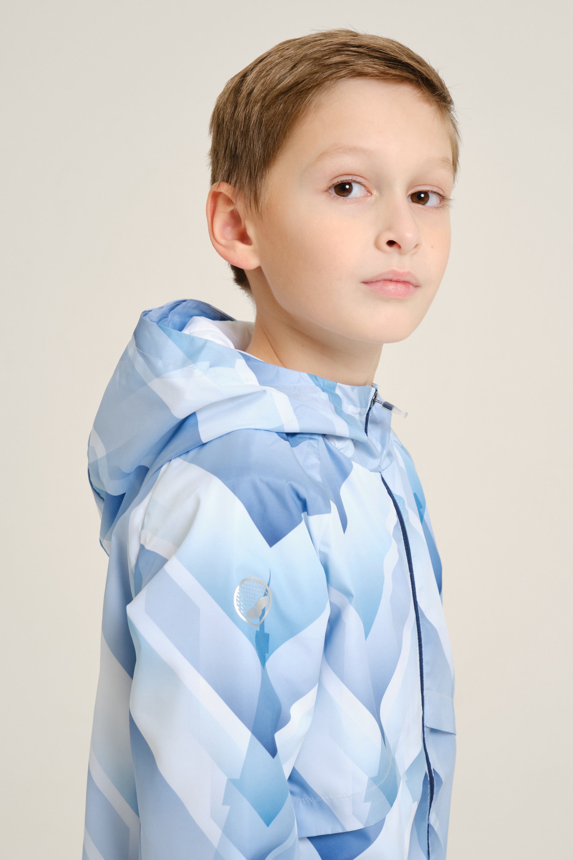 Непромокаемая куртка для мальчиков — незаменимый элемент гардероба на межсезонье. Модель имеет облегающий крой и подойдет как для регулярных занятий спортом, так и для игр и прогулок на свежем воздухе. Благодаря водоотталкивающей пропитке A-RAIN BREAKER куртка останется сухой во время дождя. Модель полностью выполнена из полиэстера — износостойкого и устойчивого к воздействию солнечных лучей материала. Куртка дополнена стильным принтом по всей поверхности, а силуэт рельефного узора на спине напоминает Эйфелеву башню. Плотность ткани — 73 г/кв. м.