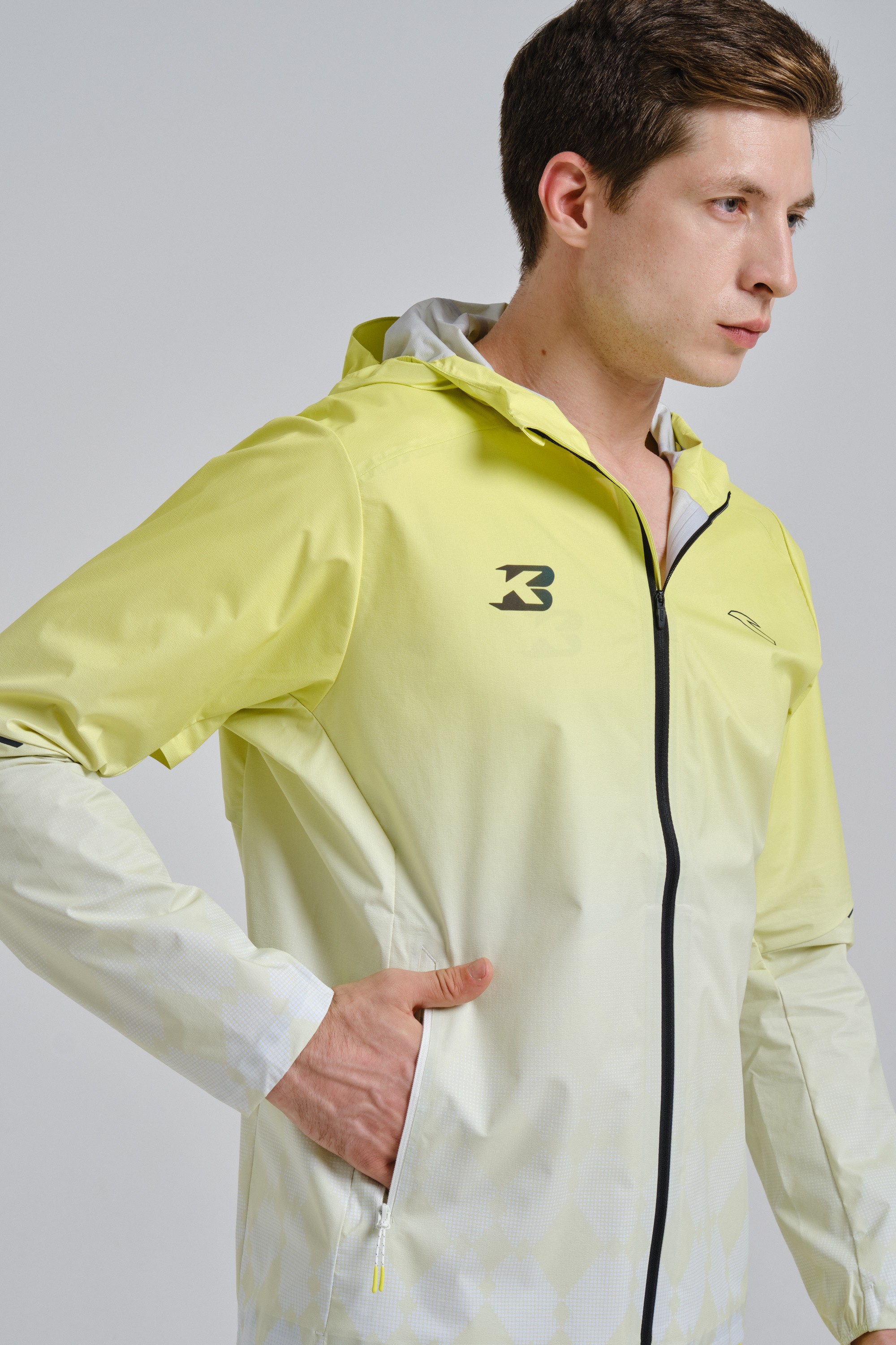 Проклеенные швы куртки исключают проникновение влаги, обеспечивая сухость даже в условиях суровой непогоды. Вентиляционные каналы под мышками и на спине обеспечивают оптимальную циркуляцию воздуха, предотвращая перегрев во время интенсивных нагрузок. Специальный эргономичный крой локтей и зоны плеч гарантирует максимальную свободу и естественность движений. Удобный капюшон с эластичными вставками обеспечивает точное и комфортное прилегание к овалу лица, не затрудняя обзор. Специальный крой манжет частично выполнен на резинке для надежной фиксации и дополнительной защиты от ветра. Ветронепроницаемая молния по всей длине помогает управлять микроклиматом куртки, и оснащена защитой подбородка от касания замка. Два боковых кармана на молнии с удобными пуллерами обеспечивают надежное хранение и легкий доступ к необходимым мелочам. Светоотражающие элементы на груди, рукавах и капюшоне значительно повышают вашу видимость в условиях недостаточного освещения, обеспечивая безопасность во время пробежек в темное время суток.
