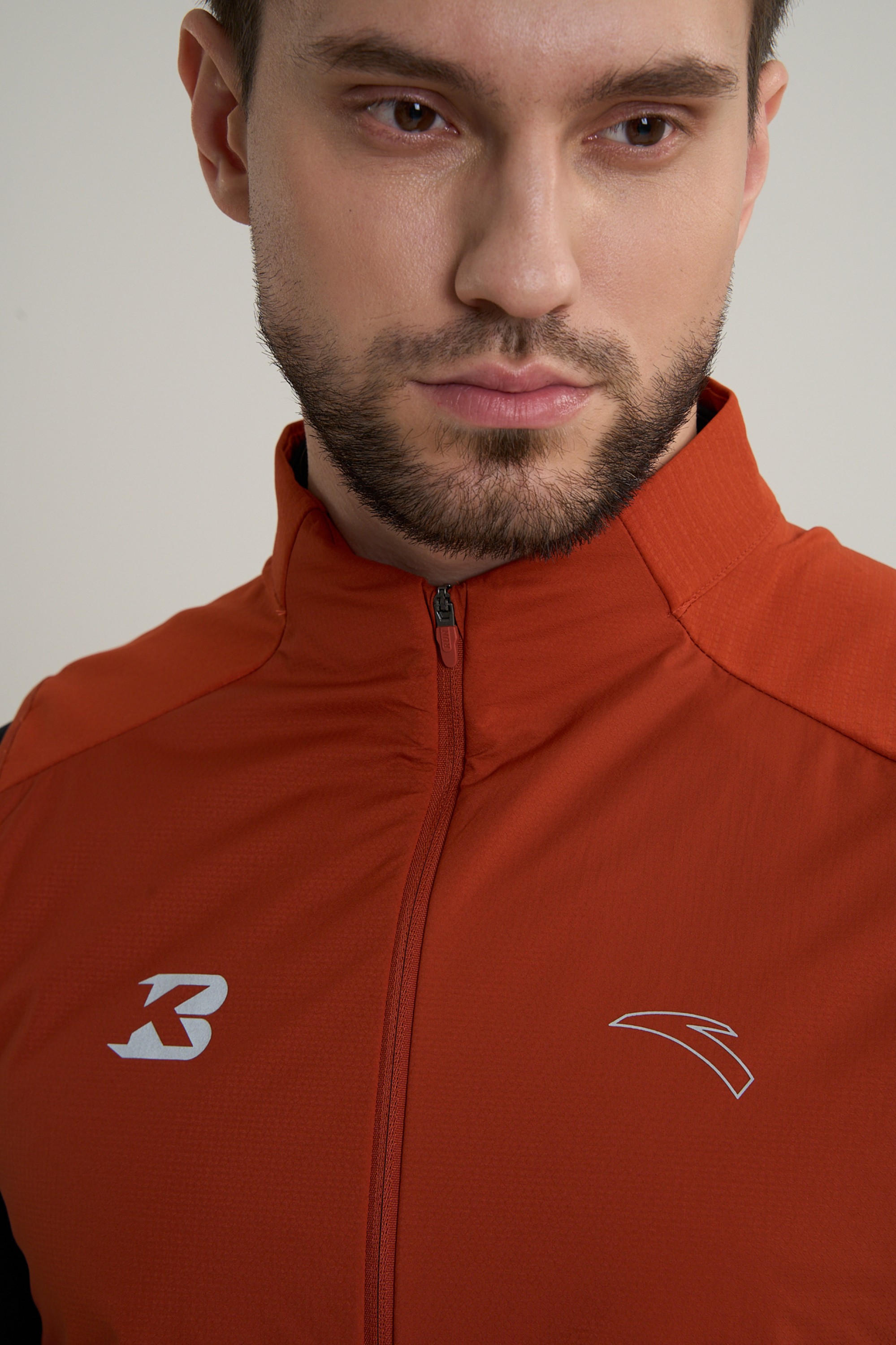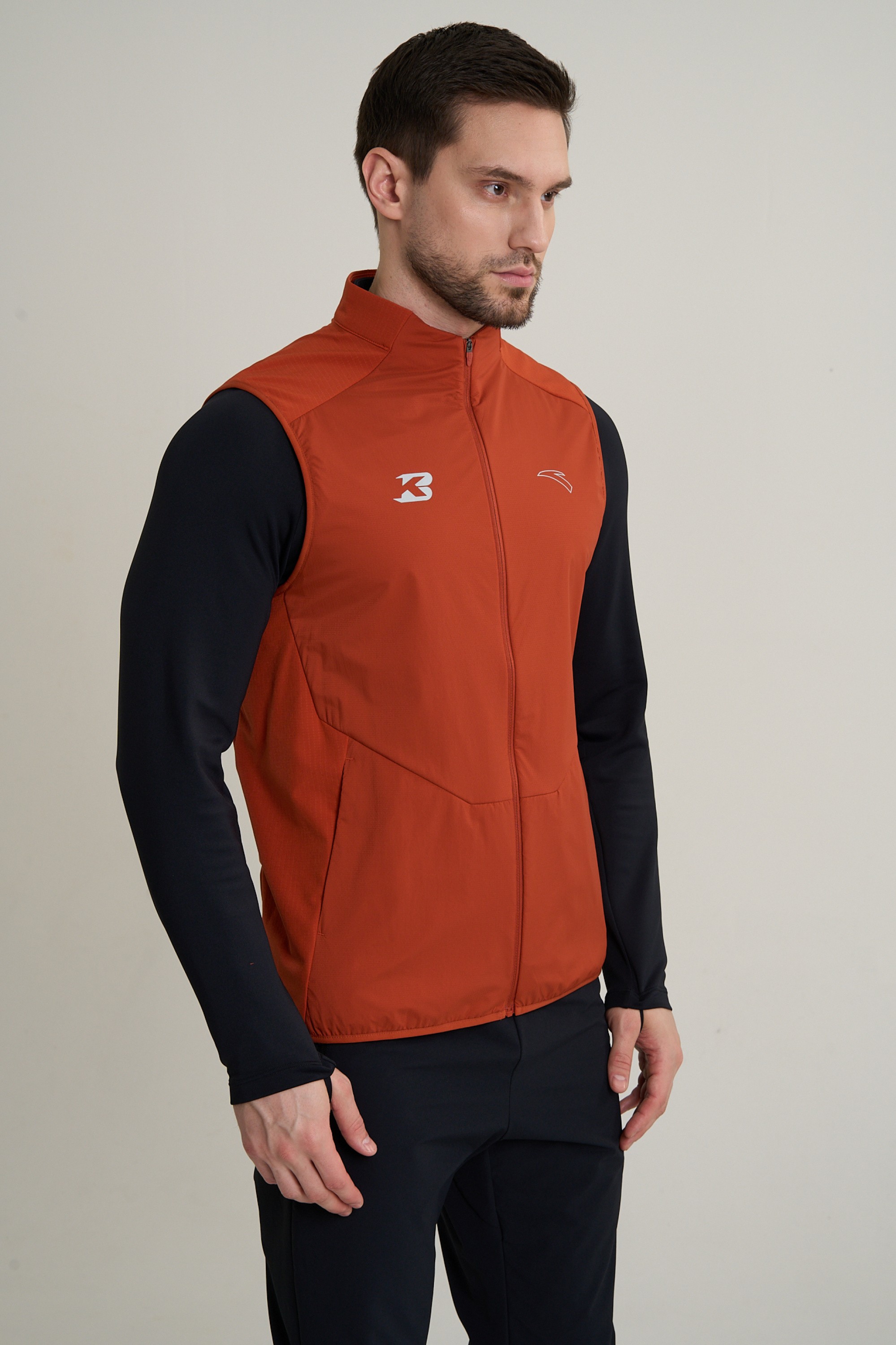 Крой Slim Fit повторяет контуры тела, не создавая лишнего объема и сопротивления воздуху. Панели из материала низкой плотности по бокам обеспечивают микровентиляцию, отводя излишки тепла и влаги. Воротник-стойка и ветрозащитная молния с мягкой защитой подбородка создают барьер против холодного ветра. Два боковых кармана на молнии и специальный маленький карман для геля, расположенный на подоле под правой рукой для быстрого доступа, добавляют жилету практичности.